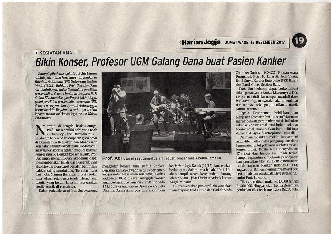 Departemen Kebijakan dan Manajemen Kesehatan Fakultas Kedokteran (FK) UGM akan menggelar konser amal peduli kanker bertajuk “Life, Passion and Music” pada 5 Mei 2018 di Auditorium Sanata Dharma Yogyakarta. Kepala […]