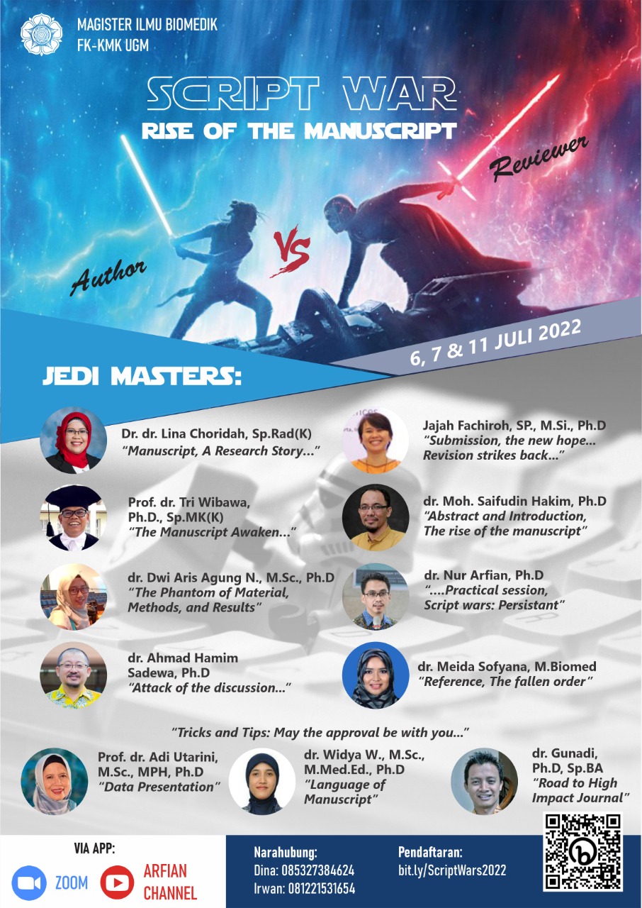 **SEGERA DAFTAR** ———– FREE !!! ——— SCRIPT WAR SERIES Workshop Penulisan Manuskrip dan Publikasi Ilmiah Program Studi Magister Ilmu Biomedik FK-KMK UGM akan menyelenggarakan Workshop Penulisan Manuskrip dan Publikasi Ilmiah […]