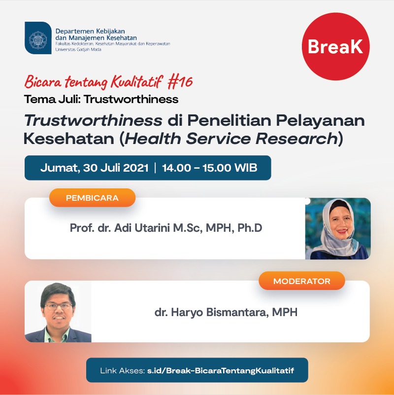 BreaK #16: Trustworthiness di Penelitian Pelayanan Kesehatan (Health Service Research)